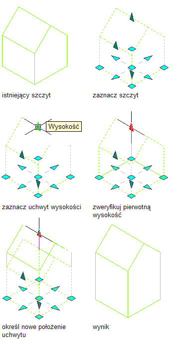 Edycja elementu bryłowego typu szczyt za pomocą uchwytu wysokości