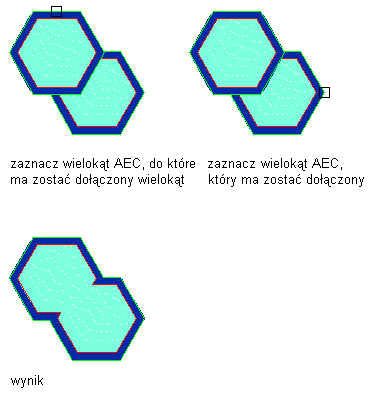 Uwaga: W przypadku scalania dwóch wielokątów AEC właściwości scalonego wielokąta AEC są identyczne jak właściwości pierwszej wybranego wielokąta AEC.