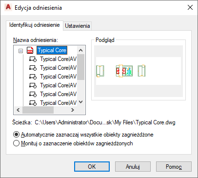 Procedura ta umożliwia edytowanie wartości ręcznych, bazujących na stylu danych zestawu właściwości, dołączonych do obiektów na rysunku, do których są odnośniki zewnętrzne.