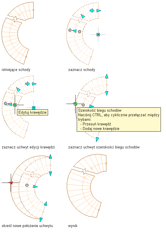 | zachować położenie punktu środkowego i uchwytów zewnętrznych podczas zmiany kształtu schodów spiralnych |
