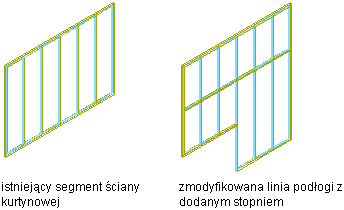 Modyfikacja linii podłogi ściany kurtynowej polegająca na dodaniu stopnia