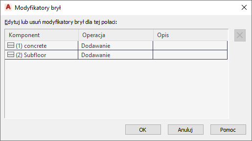 | zmień operację użytą do zastosowania modyfikatora bryły do komponentu stropu lub połaci dachowej, |