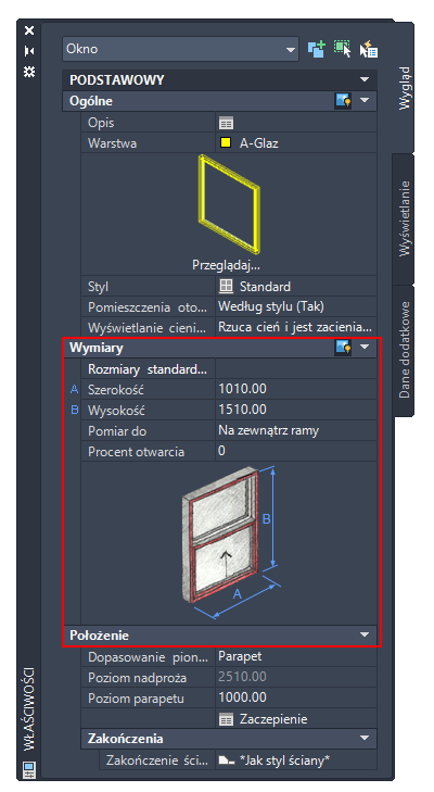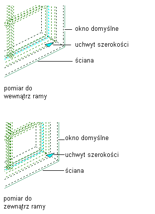 Poniżej opisano procedurę zmiany sposobu pomiaru szerokości okna lub okien.