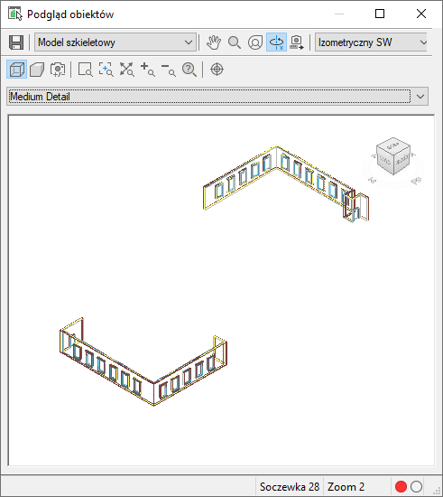 Narzędzie ViewCube wyświetlane jest również w Podglądach obiektów. W Podglądach obiektów narzędzie ViewCube jest zawsze włączone.