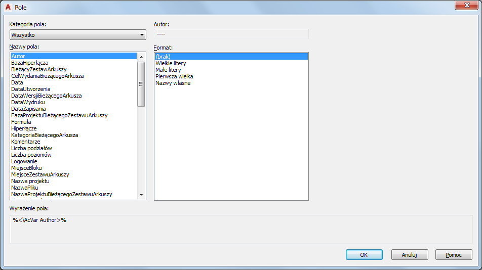 Aby wstawić pola na rysunku