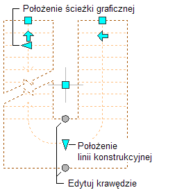 Uchwyty Graficzne położenie ścieżki, Położenie linii konstrukcyjnej i Edytuj krawędzie