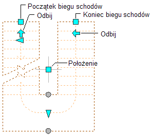 (Początek biegu schodów) Umożliwia zmianę punktu początkowego biegu schodów w kształcie litery U.