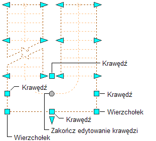 2. Wybranie uchwytu Edycja krawędzi umożliwia dostęp do trybu edycji krawędzi (szerokość spocznika, krawędzie spocznika lub wierzchołki spocznika).