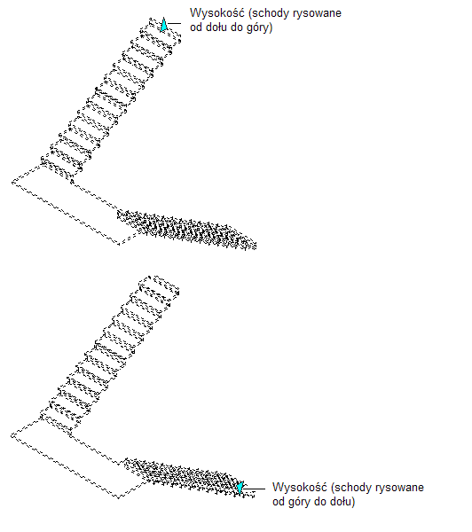 (Odwracanie zakończenia) Umożliwia odwrócenie zakończenia schodów w kształcie litery U.