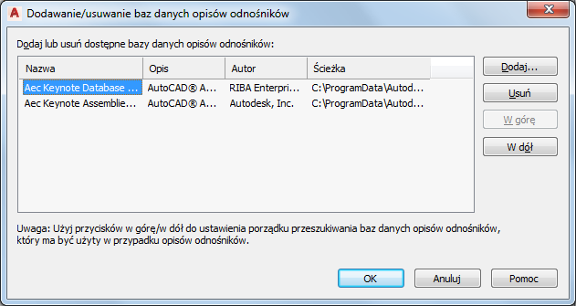 3. Na stronie biblioteki AEC kliknij przycisk Dodaj/Usuń dla bazy danych opisów odnośników.