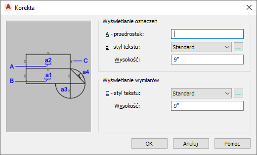 - W obszarze Wyświetlanie wymiarów zdefiniuj ustawienia wymiaru krawędzi: