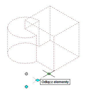 Jeżeli tylko jeden element jest dołączony do grupy brył, nie będzie wyświetlane żądanie wyboru elementów. Pojedynczy element jest odłączany bez podawania dodatkowych danych.