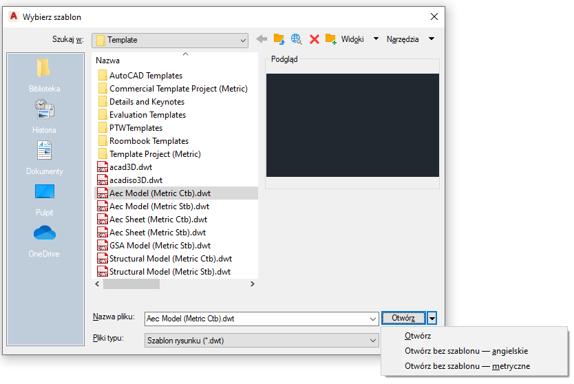 Procedura ta umożliwia utworzenie rysunku bez wykorzystania szablonu.
