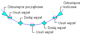 Można dodawać węzły do tych krzywych układu, które mają węzły rozmieszczone ręcznie lub z równym odstępem. Krzywe układu z węzłami o stałym, powtarzalnym odstępie nie mogą zostać zmienione bez zmiany długości krzywej lub odstępu pierwszego węzła.