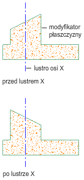 Odbicie lustrzane modyfikatora rzutu ściany w kierunku X