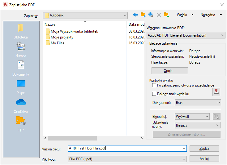 Eksportowanie rysunków do pliku PDF