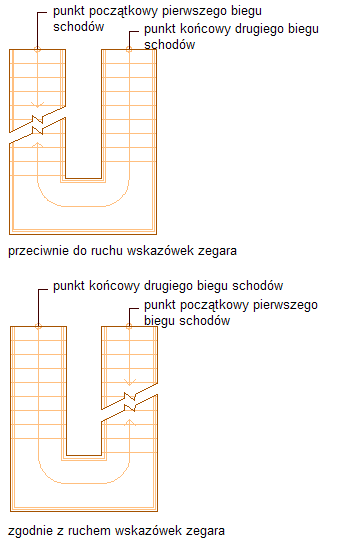 Określanie kierunku poziomego schodów w kształcie U