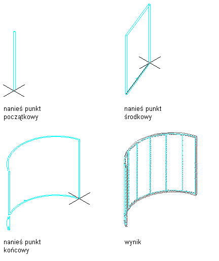 Opisana poniżej procedura pozwala utworzyć na rysunku łukową ścianę kurtynową.