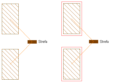 Zerowe odsunięcie obwiedni strefy (po lewej) i niezerowa wartość odsunięcia (po prawej)