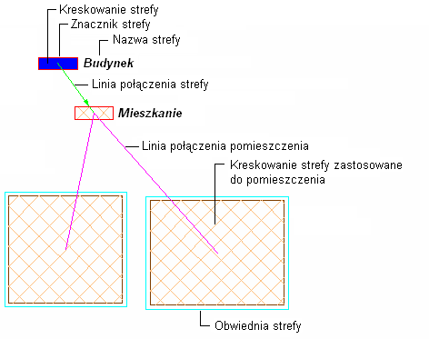 8. W polu Odsunięcie obwiedni strefy wprowadź wartość określającą odstęp między obwiednią strefy a obwiedniami bazowymi dołączonych do niej pomieszczeń.
