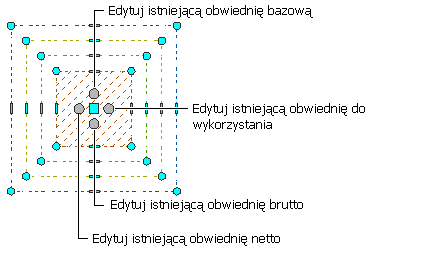 Po wyświetleniu obwiedni: netto, użytkowej i brutto należy je włączyć, aby umożliwić edytowanie ich za pomocą uchwytów.