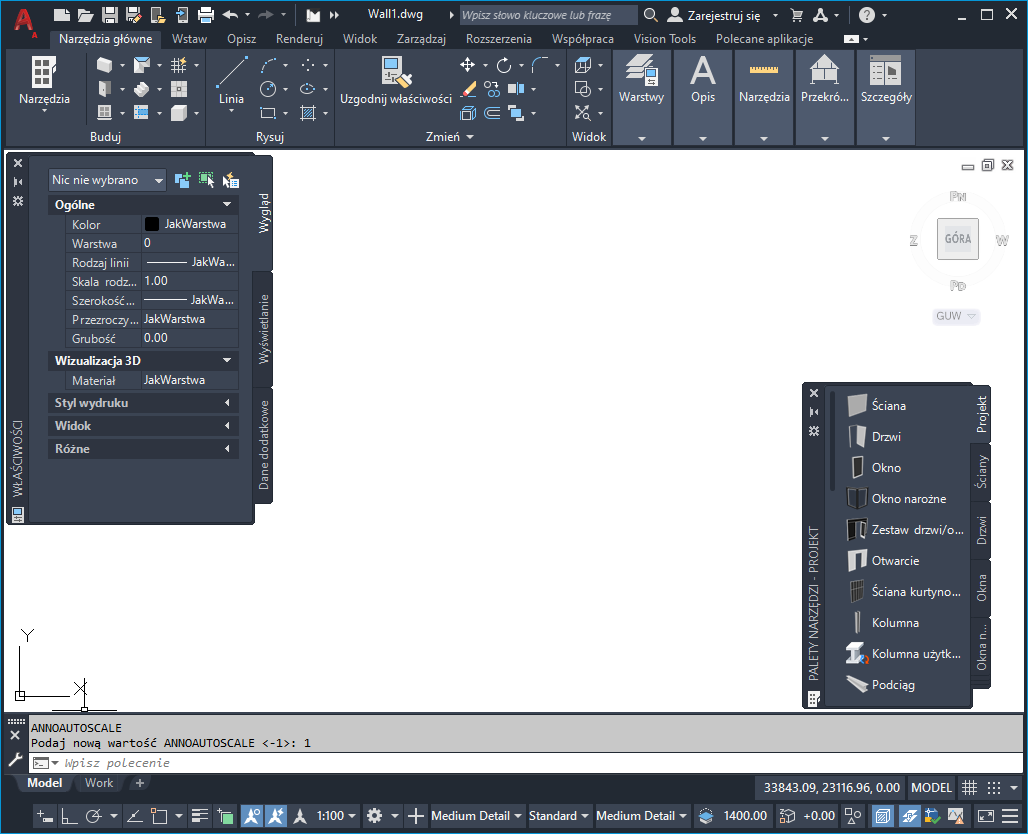 Domyślna konfiguracja obszaru roboczego programu AutoCAD Architecture 2027 Toolset