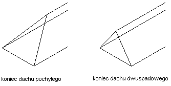 Opisana poniżej procedura umożliwia dodanie dachu dwuspadowego o właściwościach pochodzących z wybranego narzędzia obróbki dachów. Dach można skonstruować wychodząc od dachu jednospadowego, w którym następnie żądane krawędzie należy złamać, nadając im rolę szczytów. Następnie w zakończeniach krawędzi szczytowych można określić nachylenie, tworząc naroża dachu.