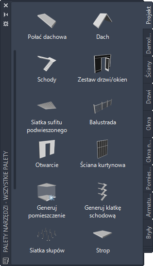 Palety użytkownika utworzone przez menedżera ds. CAD lub innych użytkowników mogą także zawierać narzędzia stref ze stylami stref i parametrami dostosowanymi do projektów lub standardów stosowanych w firmie.