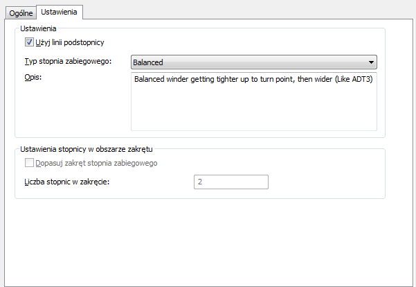 obracać stopnice wzdłuż schodów jako Styl stopnia zabiegowego wybierz opcję Zrównoważony.