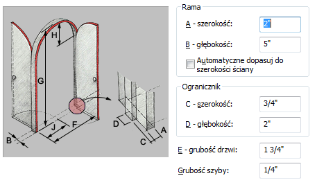 | zmienić grubość drzwi | wprowadź wartość w polu Grubość drzwi. |