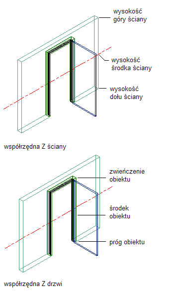 | użyć spodu ściany jako punktu odniesienia | wybierz opcję Dół wysokości ściany (krzywej) w polu Od. |