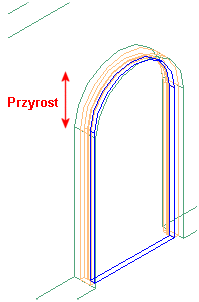 | Przyrost wysokości | dostępny jedynie w przypadku kształtów drzwi, takich jak kształtów drzwi, jak: gotycki, łukowy oraz pięciokątny. | Określa wysokość spiczastego lub łukowego wierzchołka drzwi. Ilustracja![]() |