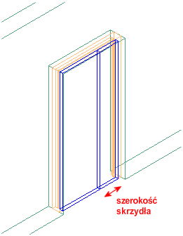 | Szerokość skrzydła | Dotyczy tylko takich rodzajów drzwi, jak: niesymetryczne, asymetryczne przesuwne podwójnie oraz niesymetryczne przeciwległe | Określa szerokość panelu/płyciny drzwi w przypadku drzwi niesymetrycznych Ilustracja![]() |