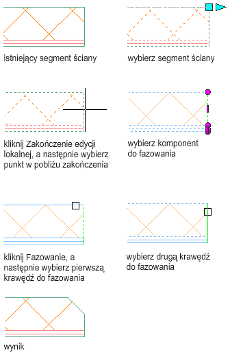 Opisana poniżej procedura pozwala zmodyfikować zakończenie ściany poprzez fazowanie narożnika komponentu ściany.