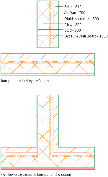 Priorytet komponentu określa, jak poszczególne komponenty są czyszczone z komponentami ściany, z którą dana ściana ma część wspólną. Im mniejszy numer indeksu komponentu, tym wyższy jego priorytet w części wspólnej z innymi ścianami.