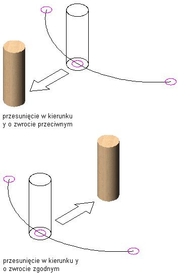 Przesuwanie obiektu wzdłuż krzywej układu w kierunku Y.
