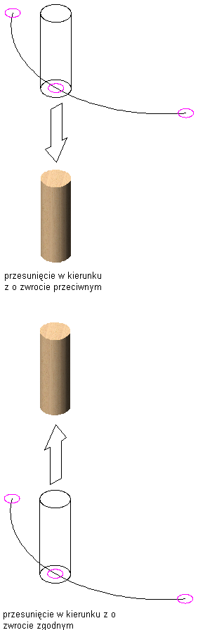 Przesuwanie obiektu wzdłuż krzywej układu w kierunku Z.