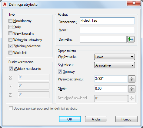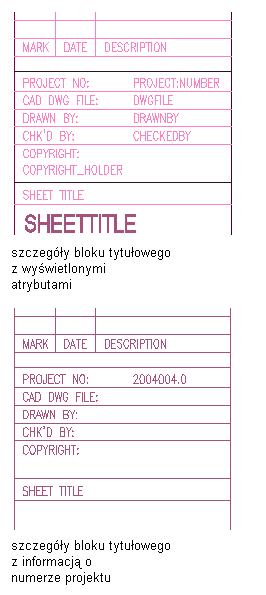 Ta procedura służy do utworzenia atrybutów projektu dla bloku tytułowego na rysunku