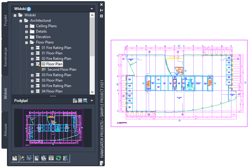 Rysunek widoku zostanie otwarty w obszarze rysunku programu zestaw narzędzi AutoCAD Architecture 2027.