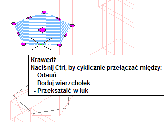 • Uchwyty: wybierz uchwyt krawędzi i naciśnij klawisz Ctrl, co spowoduje przejście do trybu edycji Dodaj wierzchołek. Przesuń krawędź i kliknij w wybranym miejscu lub wprowadź wartość i naciśnij klawisz Enter.