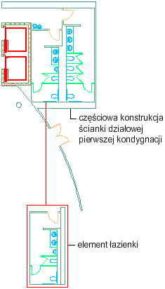 Ten sam element można umieścić na różnych poziomach i podziałach. Jeżeli utworzony zostanie element — układ łazienki, można użyć go na drugiej kondygnacji zachodniego skrzydła tak samo, jak na pierwszej kondygnacji wschodniego skrzydła. Aby umieścić element na konkretnej kondygnacji i w konkretnym skrzydle, należy utworzyć do niego odnośnik w konstrukcji. Można na przykład utworzyć element o nazwie „Ogólny układ łazienki” i dołączyć go jako odnośnik do konstrukcji o nazwie: „Pierwsze piętro — Mieszkanie po lewej,” „Pierwsze piętro — Mieszkanie pośrodku,” „Pierwsze piętro — Mieszkanie po prawej” i tak dalej.