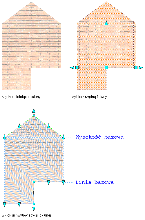 Wyświetlanie efektów edycji lokalnej uchwytów elewacji ściany