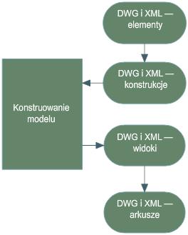 Konstrukcje można tworzyć i modyfikować w bieżącym projekcie. Można też importować rysunki i konwertować je lub dodawać do konstrukcji. Konstrukcje można importować do projektu bezpośrednio lub przez utworzenie łącza.