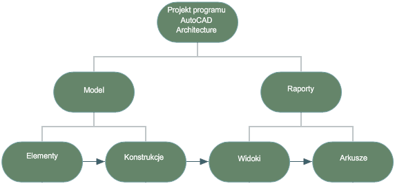 Projekt programu zestaw narzędzi AutoCAD Architecture 2027 jest zbudowany na bazie struktury XML. Dla każdego pliku tworzonego rysunku — na przykład rysunku kondygnacji lub rysunku konstrukcyjnego — tworzony jest towarzyszący mu plik XML. Plik XML zawiera informacje istotne dla projektu, takie jak dane o poziomach i podziałach. Każdy plik rysunku utworzony w projekcie może zostać użyty także na zewnątrz projektu, ponieważ sam plik rysunku nie zawiera informacji istotnych dla projektu.