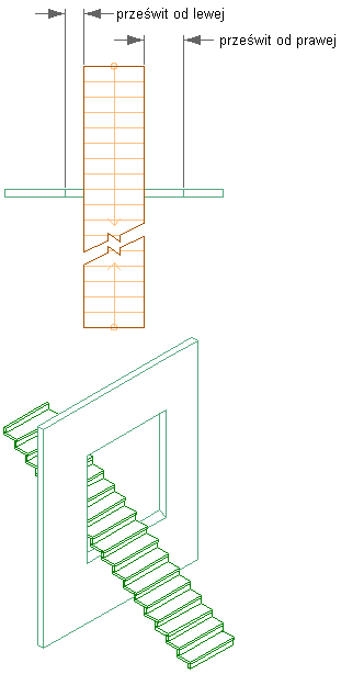 | określić prześwity z lewej i prawej strony dla warunków przenikania dla schodów prostych i wielospocznikowych | wprowadź wartości w polach Prześwit lewy i Prześwit prawy. |