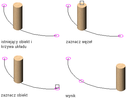 Przesuwanie zaczepionego obiektu do innego węzła krzywej układu