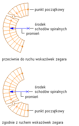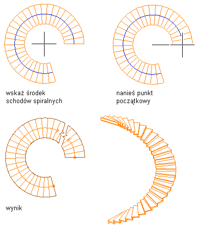 Procedura ta służy do tworzenia kręconych i spiralnych schodów. Schody spiralne od góry do dołu owijają się wokół punktu centralnego.