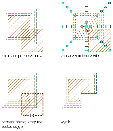 Odejmowanie pomieszczeń z ręcznie określonymi odsunięciami obwiedni