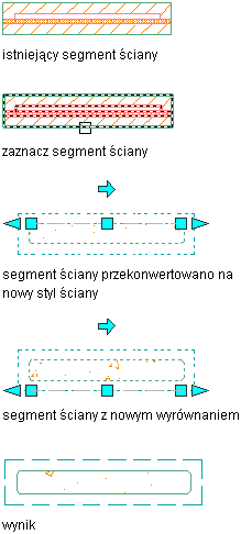 Procedura ta służy do zmodyfikowania jednej lub kilku ścian przez zastosowanie właściwości narzędzia ściany. Właściwościami są: styl ściany i wszelkie inne ustawienia określone w wybranym narzędziu.