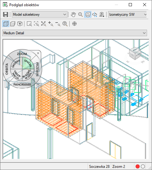 Menu SteeringWheels pomagają zaoszczędzić czas i liczbę kliknięć, łącząc wiele wspólnych narzędzi nawigacyjnych w jednym interfejsie. Koła sterujące są dostosowane do kontekstu, w którym jest wyświetlany model.
